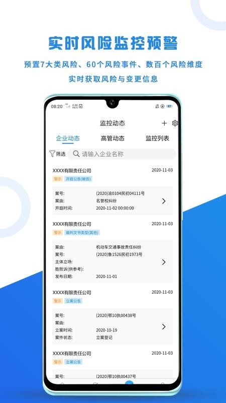 6、拥有监控动态版块,用户可以在版块中清晰看到各种企业和高管动态,快速了解;