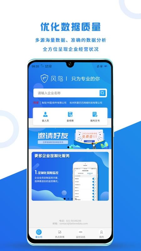 风鸟app是一款风险查询和监控软件,让用户能够清晰看到各个企业的风险信息,通过监控功能实时了解风险动态;用户可以在应用中一键查询各种企业的数据内容,通过数据了解企业当前的经营情况,从而更放心的和企业合作;用户通过软件能够在线查询各种裁判文书内容,通过文书了解各企业的各种裁判内容,避免企业拥有信用等问题;在这里,用户还可以看到各个企业的详细风险信息,了解风险分布和趋势,从而能够和更加靠谱的企业进行合作,避免出现损失;快下载这款软件试试吧,在线查询各个企业信息,了解企业风险详情。