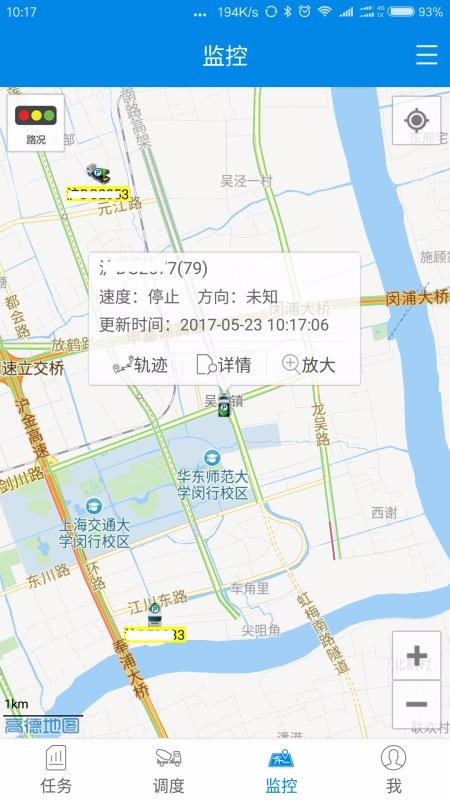 2、点击监控,立即查看车辆位置,点击放大,获取车辆详情