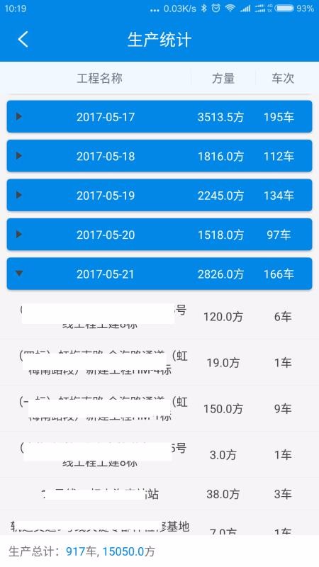 4、直接查询生产统计数据,浏览各个工程详情,及时管理