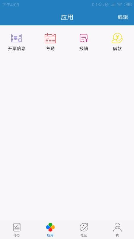 宇信协同办公是一个协同办公软件,为办公人员设置了待办、应用和社区服务中心,应用中心设置许多方便快捷的功能图标;当用户打开软件的第一时间就能看到待办中心记录的待办任务事情,可以按照该待办的安排逐个完成自己的工作任务,也能在这里添加新的待办,记录后避免因为忘记任务而造成工作拖延的情况;应用中心设置许多常用的功能应用,支持点击其中的开票信息自由编辑公司或企业的开票信息内容,编辑设置后就能将该信息保存,便于随时开票;另外还在应用页面设置快捷的考勤工具,支持在线查看自己考勤记录或马上完成考勤打卡任务。