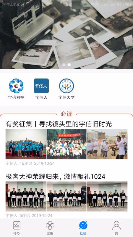 4、丰富的社区中心内容,这里面设置了宇信科技、宇信人和宇信大学几个专区;