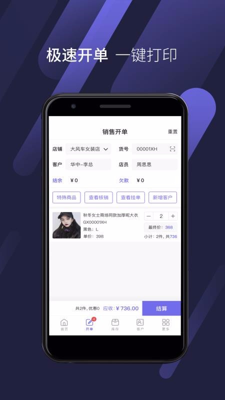 3、销售开单更加省时便捷,统计的金额准确,结算更加方便快捷;