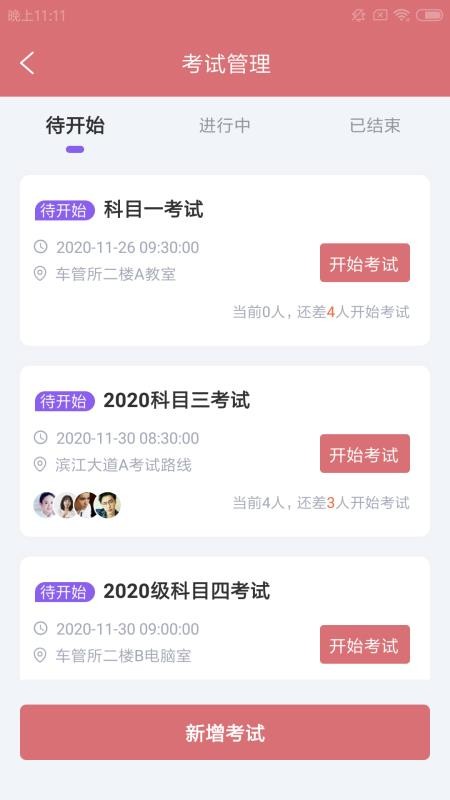 5、用户在软件中能够清晰看到各个考试的时间和考试位置,并且能够看到当前待考试人数;