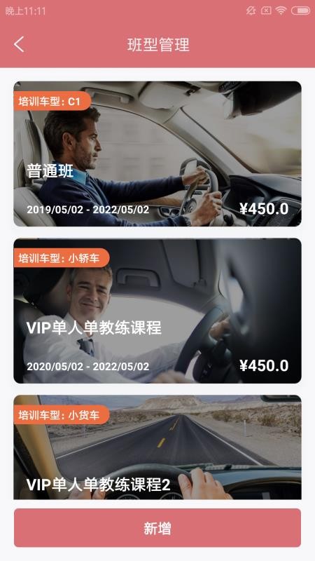 3、进入班型管理版块,查看各个班型信息,一键添加新的班型,修改班型价格