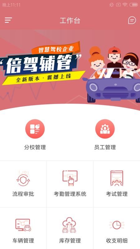 倍驾辅管app是一款为各个驾校提供服务的软件,让驾校能够更轻松的进行管理办公,提高工作效率;应用中有多种功能,用户可以在这里看到自己驾校的各个分校信息,了解分校的经营状况,在线对分校进行管理;用户通过软件能够看到各个员工的详细信息,了解员工们的工作情况,掌握各个员工的考勤动态,从而更合理的发放工资;在这里,用户还可以看到驾校的详细收支信息,了解每一笔收支详情,从而能够更加便捷的进行对账,轻松计算利润;快下载这款软件试试吧,方便快捷的管理驾校,了解驾校详细的经营状况。
