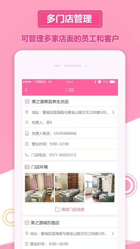 2、可添加多个门店进入,快速的管理多家店面的员工以及客户;