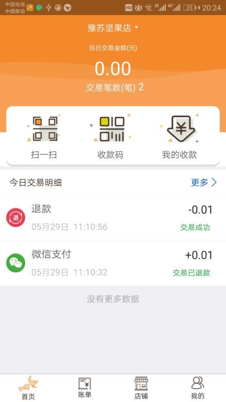 3、在首页中,用户可查看到当日的交易金额以及交易明细