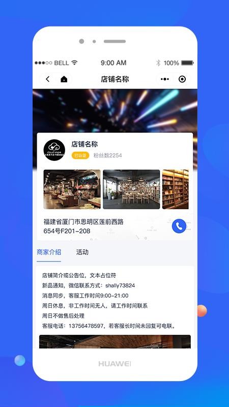 5、用户通过软件能够看到自己店铺的首页信息,在线对店铺信息进行编辑,吸引更多客户;