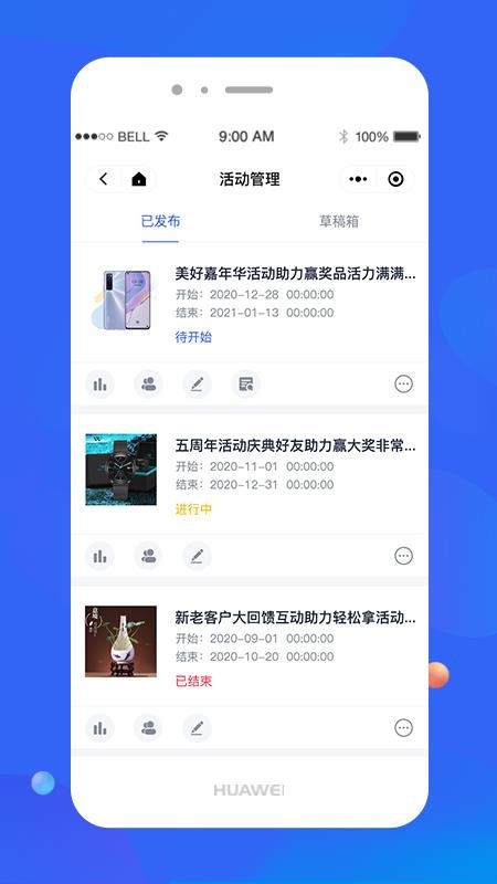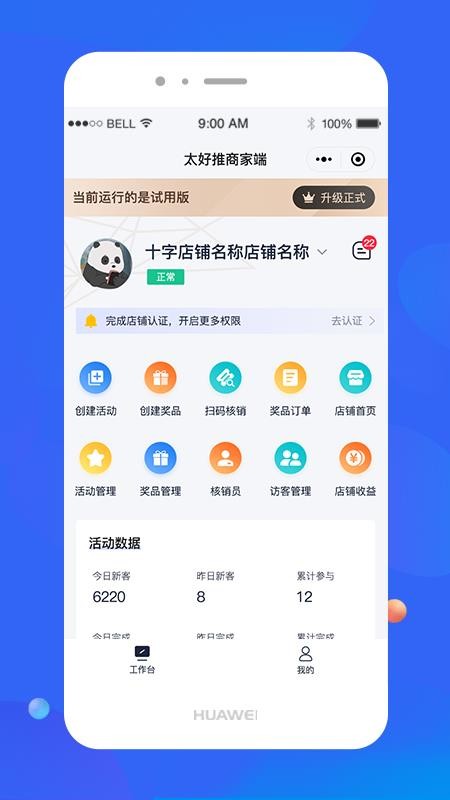 2、在首页中查看详细的活动数据内容,一键创建各种活动和奖品,快速核销
