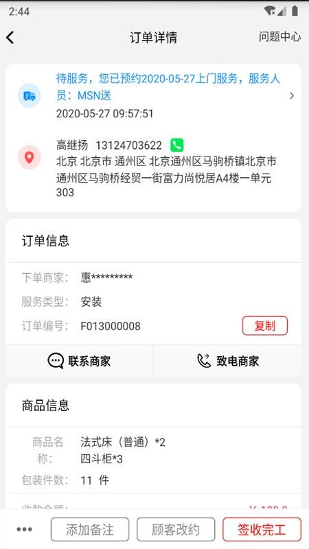 2、应用中有待服务版块,让用户能够清晰看到待服务订单信息,及时派工;