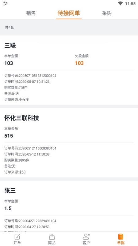 6、点击单据按钮,就能浏览到订单的具体信息