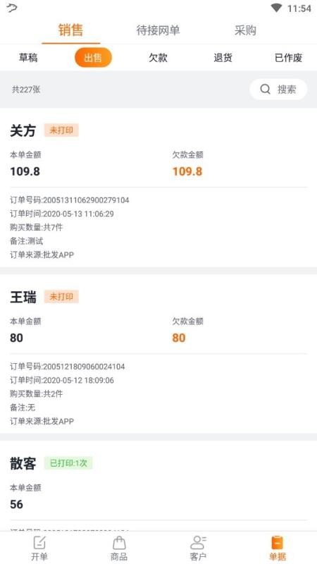 2、移动开单,在线就可以进行开单,快速的销售各种商品;