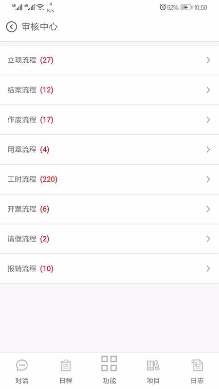 4、清晰丰富的审核中心流程,这里有立项流程、结案流程以及作废流程等列表内容;