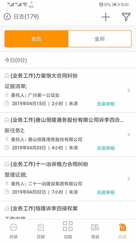 所聊app是一个律所管理软件,开设了对话、日程、功能以及项目等管理中心,还有便捷的日志服务中心,支持添加或查找日志;功能中心设置了许多的功能图标应用,其中有审核中心、日程中心以及冲突检索等功能,可以选择审核中心服务功能并打开,查看其中的待审核相关事务并在线审核,还能根据其中不同的审核类别划分列表挑选相关内容审核;软件提供了大数据服务功能,连通了大数据技术,为律师人员们提供了快捷高效的数据检索服务,能找到精准且有价值的数据内容;在功能栏中还为用户提供其他快捷的计算功能应用,满足各种律所的计算需求。