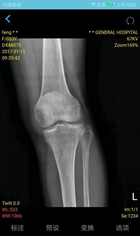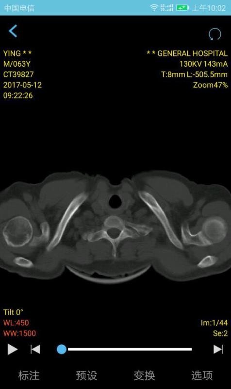 4、应用中有多种操作功能,包括WL、测量、角度、CT值和旋转等,方便快捷;