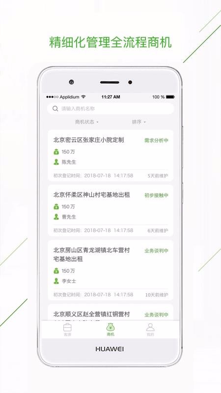 4、点击查看商机,直接根据商机状态排序查看,立即录入商机