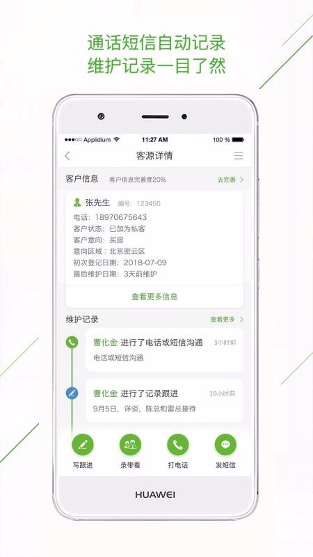 3、写跟进更加快捷,维护记录一目了然,查看后可以明确管理;