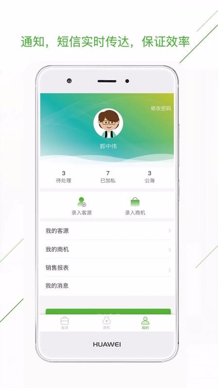 6、点击进入个人主页,立即查看我的客源、我的商机以及销售报表