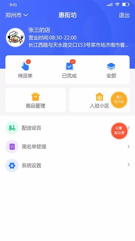 3、有丰富的设置功能列表,其中涵盖配送设置、黑名单管理以及系统设置功能;