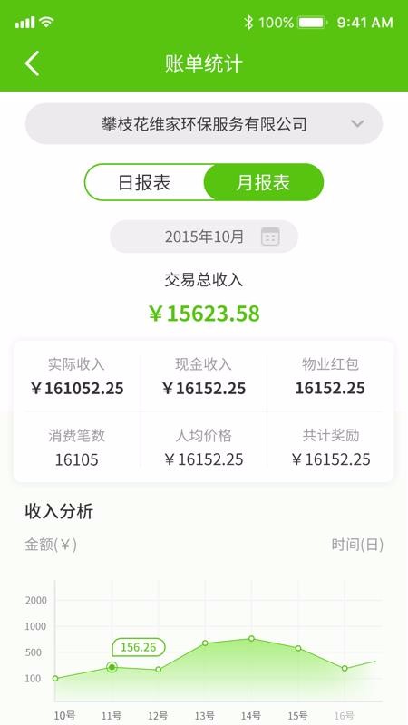 3、在账单统计页面,选择日报表或月报表即可根据时间查看统计的收益数据