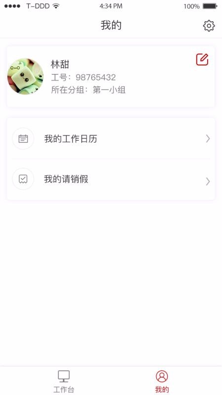 5、在我的页面,可以编辑个人信息,并查看我的请销假记录,也提供了各种设置功能