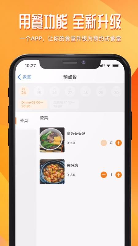 3、便捷的食堂点餐平台,绑定了公司里面的食堂系统,设置快捷方便的点餐方式;