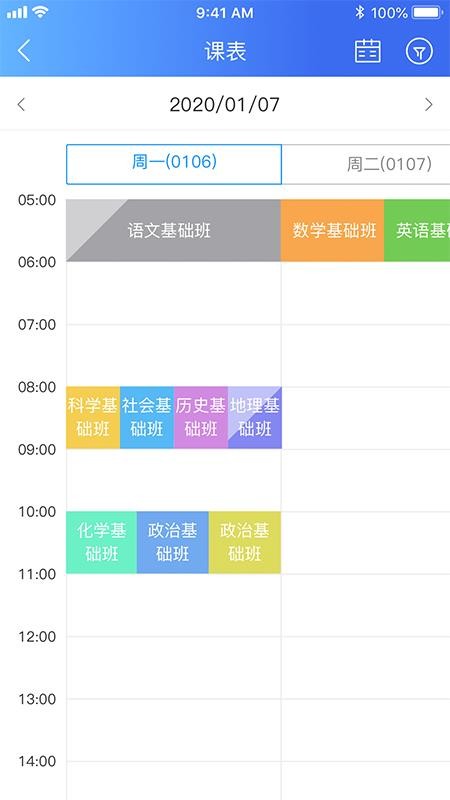 2、查看班级详细的课表内容,了解不同日期的课程安排信息,准时上课