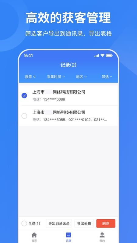 6、智能筛选,拥有筛选功能,可自行选择筛选条件,迅速的筛选记录和企业;