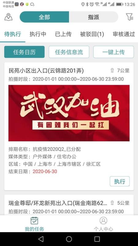 6、拥有执行中版块,用户在这里能够看到自己执行中的各任务内容,及时上传;