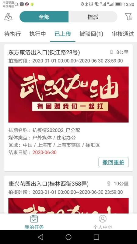2、在这里,用户能够看到各个被驳回的任务内容,一键进行撤回重拍;