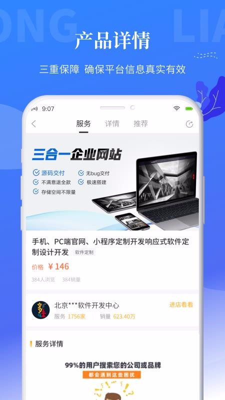 5、丰富的服务信息页面,这里面展示了服务详情、服务店铺信息以及价格等内容;