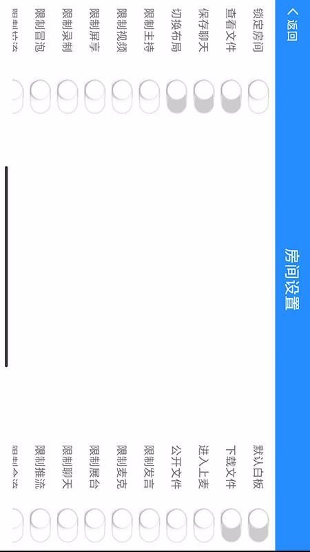 5、在房间设置页面,可以选择锁定房间、限制录制、限制冒泡等功能,一键返回开会界面