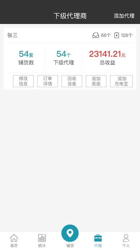 5、在代理界面中,用户可查看到下级代理的铺货情况