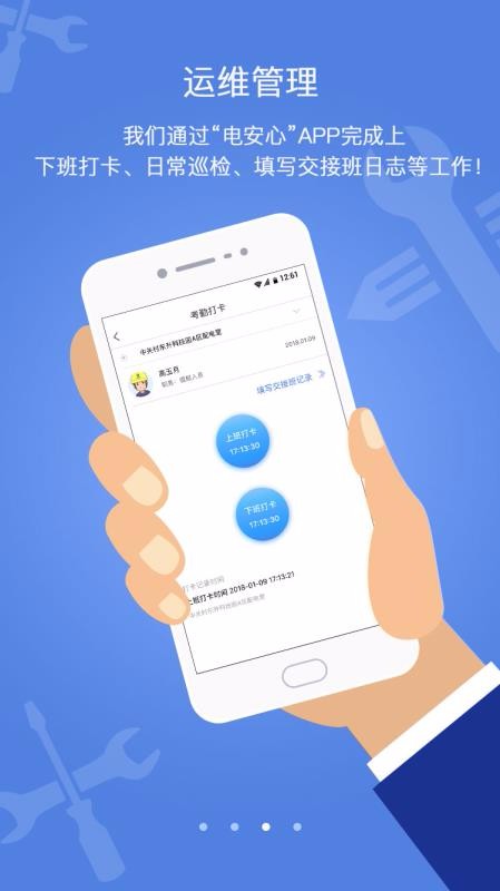 6、快捷方便的运维打卡服务,为用电人员提供了方便的考勤管理中心,轻松点击即可记录考勤;