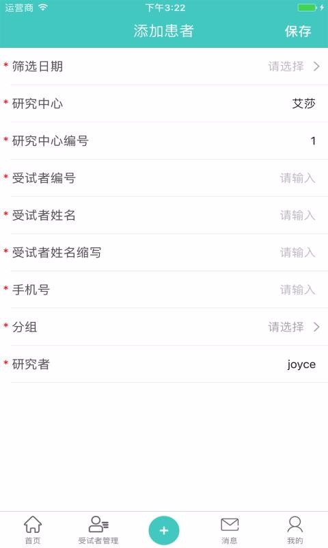 4、点击加号,即可添加患者信息进行保存和管理