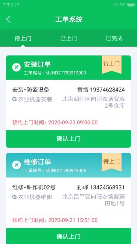 3、在这里,用户能够看到自己的各种待上门工单内容,及时上门完成工单任务;