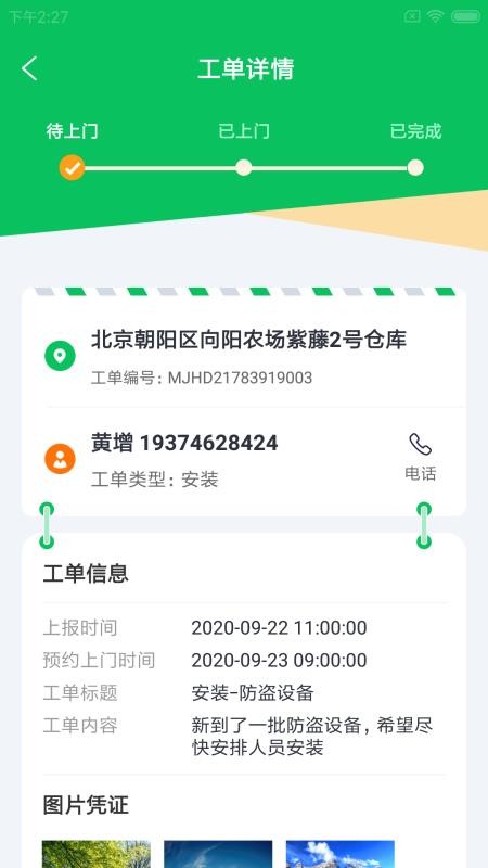 6、在应用中,用户可以看到详细的上报时间、工单标题和图片凭证内容,快速了解;