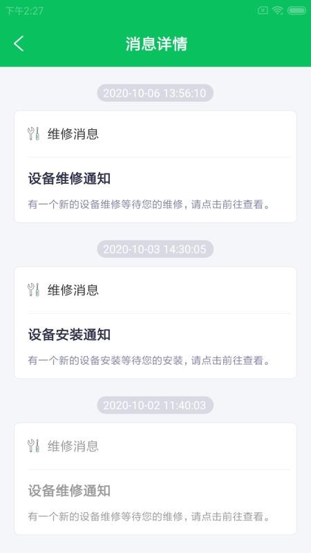 6、用户通过软件能够看到各种通知消息,快速了解最新的设备维修动态;