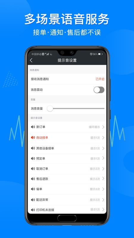 2、打开接单语音提醒,实时提醒用户接单的信息,每一次接单的及时了解;