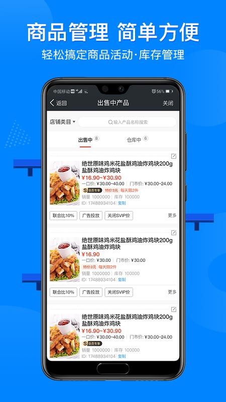 3、管理商品,可以随时上架和下架商品,为顾客提供新鲜的商品资源;
