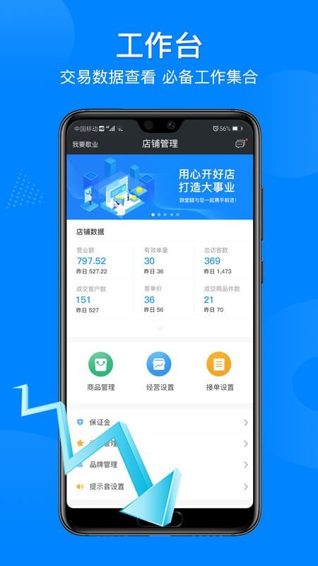 1、进入应用首页中,立即查看店铺的各种数据信息和提供的功能专区