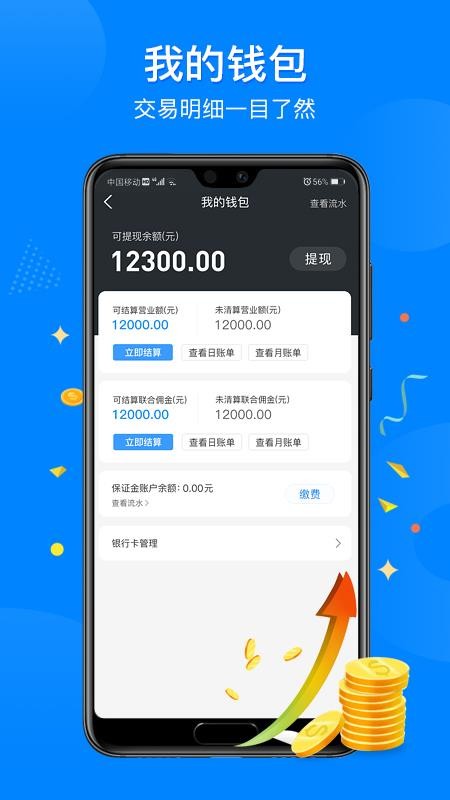 5、提现使用,实时将收入的数据提现,添加提现的渠道,立即提现收益使用;