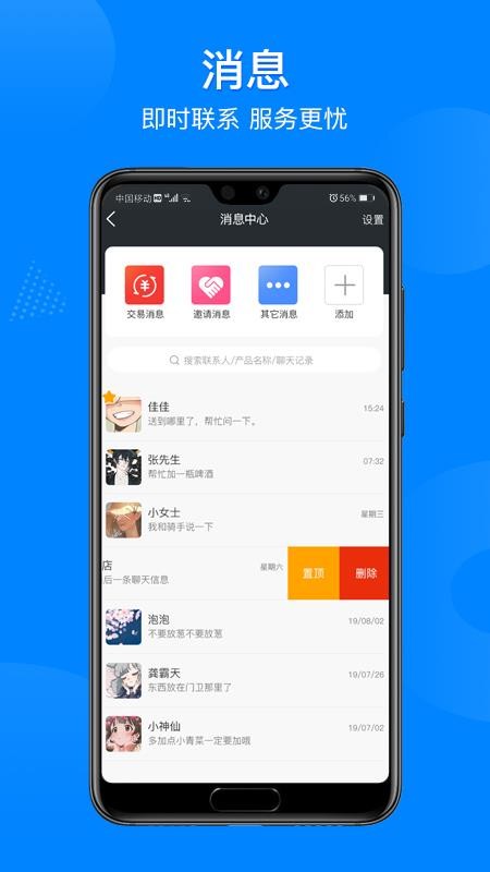 4、为用户实时通知各个方面的消息,包括交易的消息、邀请消息和聊天的消息等;