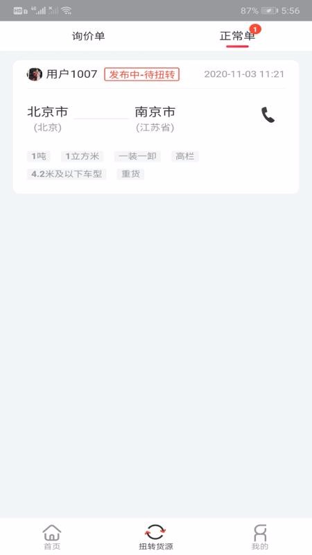 3、点击扭转货源,选择询价单或正常单即可查看货源信息