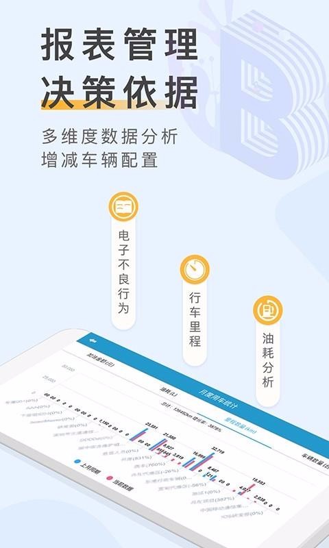 6、多维度的车辆数据分析报表,里面展示了不良行为、行车里程以及油耗分析多种数据内容;