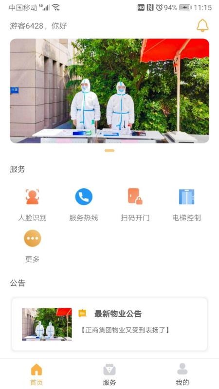 1、提供便捷的功能服务,有人脸识别、自助开门、报检报修、扫码开门等;