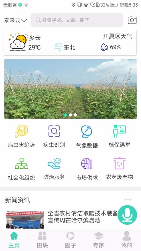 农田宝是为农业企业和农户提供的信息服务平台,提供了各种服务专区,比如植保课堂、病虫识别、病虫害趋势、防治服务、市场供求等;在线即可了解实时的行业资讯,还可以语音录入关键词进行搜索;为用户提供了专门的交流圈子,自行上传图片发布信息动态,可以进行提问或分享,选择动态即可进行评论,在我的评论页面查看留言记录;选择农作物的类型查看推荐的专家,可以关注专家了解对方的动态,也可以预约咨询;为用户提供了植保课堂,在线即可查看百科、视频和防治技术,所有文章还可以根据农作物的类型进行分类查看。