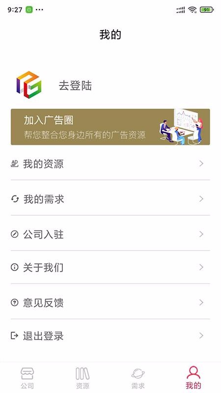 2、进入我的页面,查看我的资源、我的需求、公司入驻等
