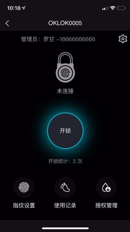 3、有非常实用的锁管理功能图标,设备管理页面中提供了一键开锁、指纹设置以及授权管理丰富图标;